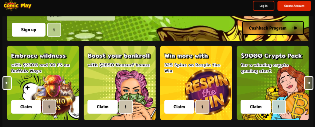 Welcome to an exhilarating journey, where every spin and card dealt brims with potential thanks to a diverse array of free spin. Whether you’re a new player eager to dip your toes into the vibrant world of online gambling, or a seasoned enthusiast looking for new ways to enhance your gameplay. Understanding and utilizing these offers can significantly elevate your Comic Play casino USA experience. This guide will walk you through different types of offers available, explain how to claim and use them effectively, and outline the policies and advantages associated with these promotional offerings.